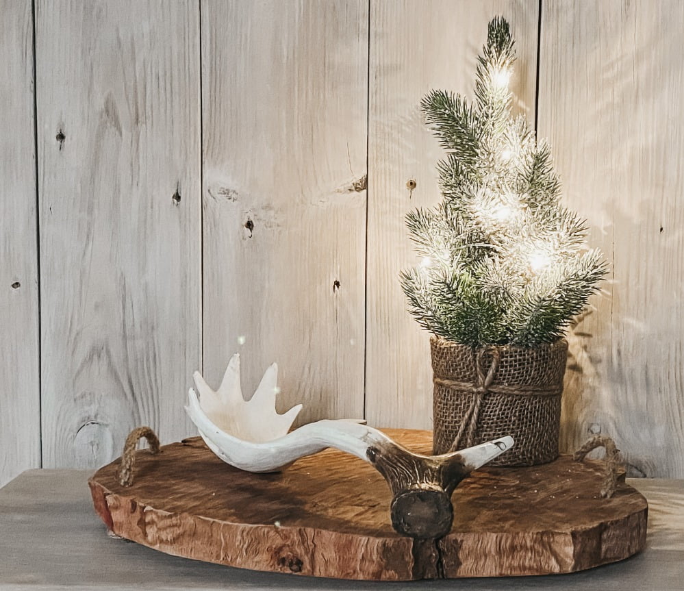 THEELICHTHOUDERS & EEN PRACHTIG HOUTEN PLATEAU