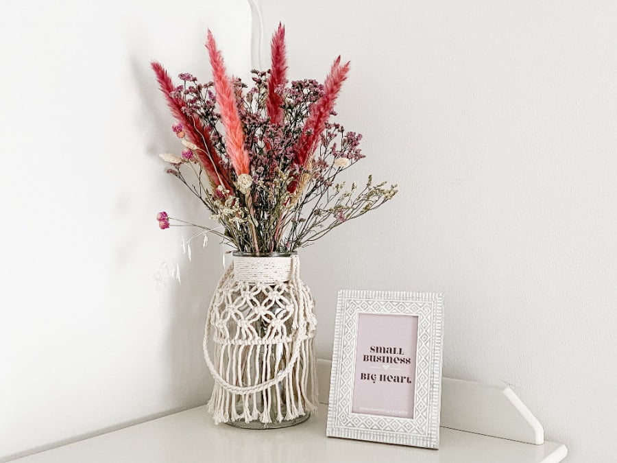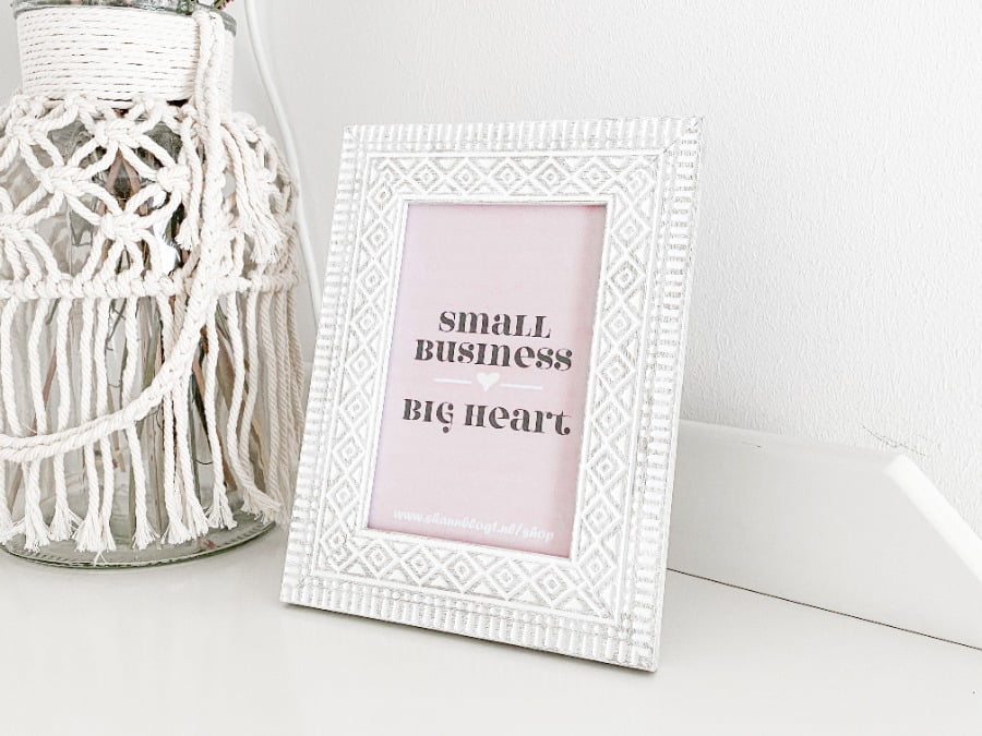 Tot slot heb ik nog wat leuke decoratieve items gevonden. Waaronder deze prachtige droogbloemen. Ik heb zelf een boeketje gemaakt van 3 verschillende soorten droogbloemen. HOW CUTE? Het vaasje waar deze droogbloemen in staan heb ik een tijdje terug ook bij Xenos gescoord maar volgens mij is deze op dit moment niet meer verkrijgbaar. Daarnaast heb ik nog een leuk fotolijstje uitgekozen voor een leuke quote die perfect in mijn kantoortje past ‘Small business, big heart!’