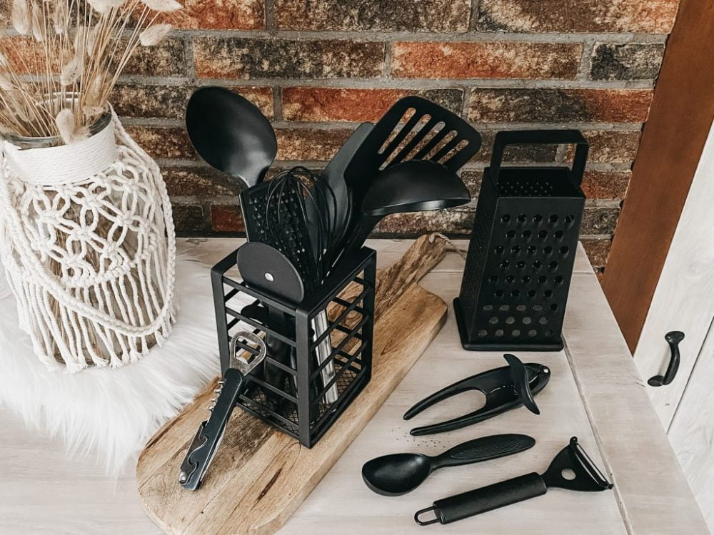 Uiteraard heb je naast bestek ook keukengerei nodig in huis. Bij Xenos vind je daar een enorm aanbod aan. Ik heb gekozen voor het industriële, zwarte keukengerei en ik ben helemaal in de wolken. Het ziet er allemaal zó goed uit. Bij het keukengerei heb ik bijpassende pannenonderzetters gevonden in dezelfde industriële look. Loooove it!