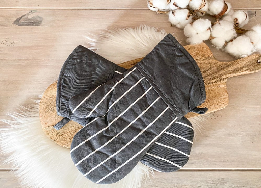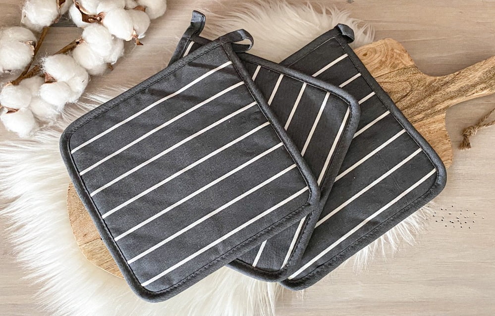 In de keuken hoort naast keukengerei, bestek en servies uiteraard ook keukentextiel. In deze categorie kun je ook erg leuk slagen bij Xenos. Ik heb er leuke pannenlappen gevonden, bijpassende ovenwanten en een keuken- en theedoek.