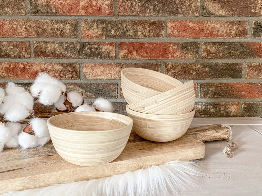 Waar ik dit keer ook voor ben geslaagd zijn mokken. Deze mokken vond ik er al erg leuk uitzien in de webshop maar in het echt vind ik ze nog leuker. De kleur, het motiefje en de grootte.. alles is perfect aan deze mokken. Ik ben helemaal verliefd. Waar ik ook verliefd op ben zijn de 4 bamboe schaaltjes die ik eerder al een keer in de winkel had gespot. Ik hou wel van de hout/bamboe accenten. Vind dat zo gezellig en sfeervol. Al ben ik ook sterk van mening dat het niet te veel hout en bamboe moet worden in huis. Een kleine touch is al voldoende voor warmte en gezelligheid in huis vind ik.