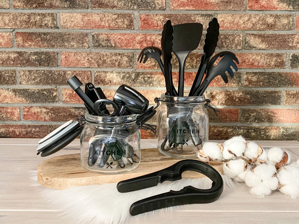 Omdat ik hierboven al een korte toelichting gegeven heb over de aanvulling van mijn keukengerei wil ik daar ook mee beginnen. Als je deel twee van mijn Moving Out serie hebt gelezen heb je gezien dat ik voor zwart/industrieel keukengerei gekozen heb. Uiteraard ben ik ook in dit thema gebleven. Het volgende keukengerei ontbrak nog in mijn collectie.