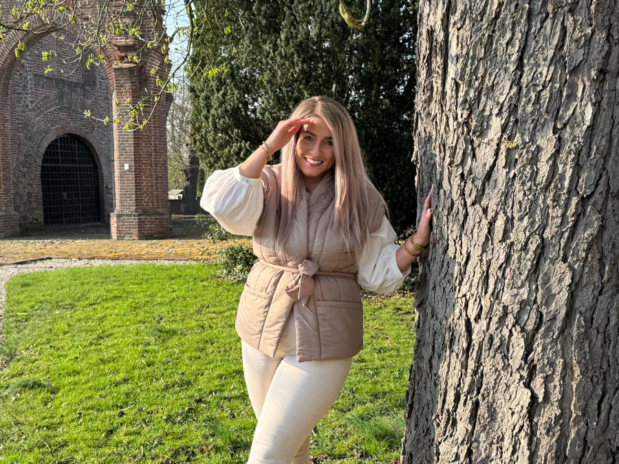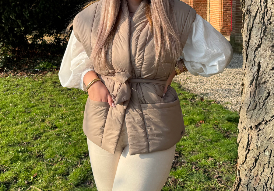 Oeh, ik ben gek op deze taupe kleur. Heel mooi! Dit gilet is gemaakt van 100% polyester, waardoor hij licht in gewicht is maar ook duurzaam. Polyester staat namelijk bekend om zijn lange levensduur en eenvoudige onderhoud. Het is een luchtige stof waardoor het gilet ontzettend comfortabel zit. Dit maakt hem ook meteen perfect voor de wat frissere dagen. Hoe leuk is hij ook in combinatie met Blouse Senna? Ik ben fan!