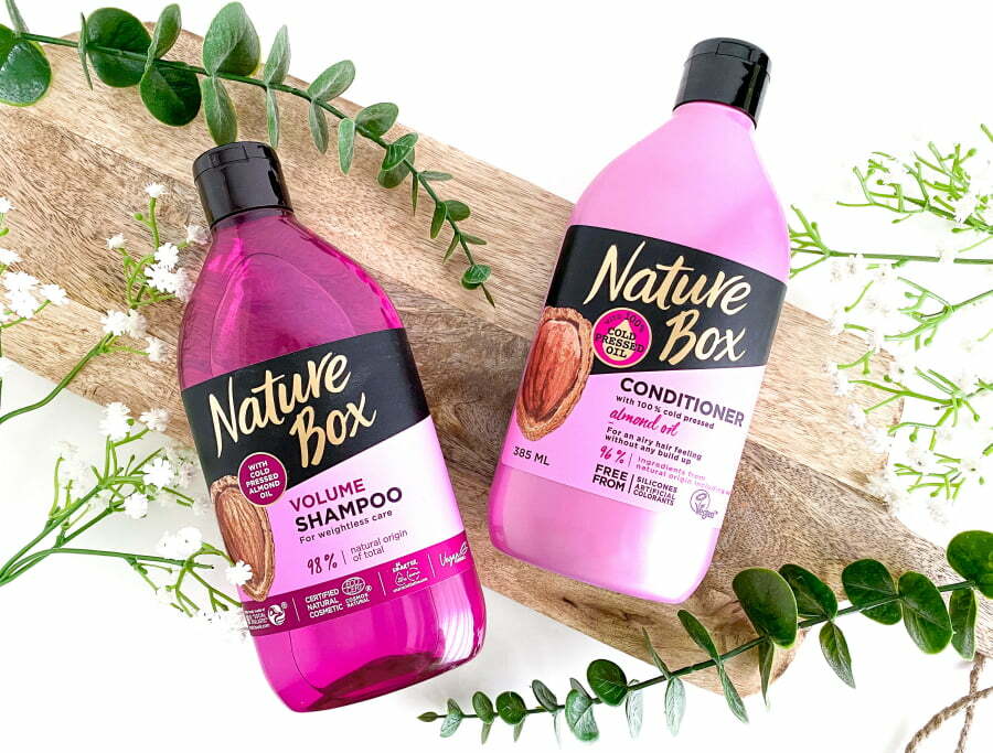 ‘De Nature Box Almond conditioner geeft fijn en futloos haar niet alleen voeding en een gezonde glans, maar ook een rijk volume. Vooral erg fijn voor mensen met fijn en slap haar!’