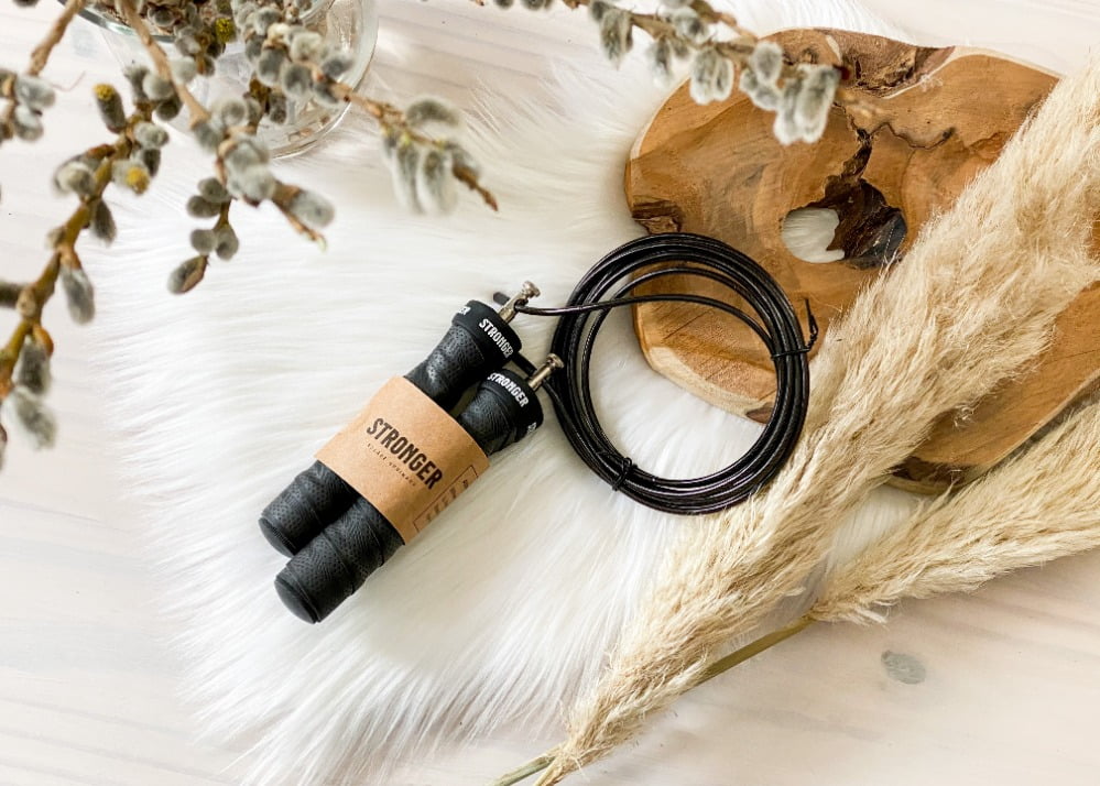 ‘Jump and burn some calories met dit hoogwaardige, verstelbare springtouw van Stronger. Het springtouw bevat een 360 graden kogellager voor een soepele beweging en heeft antisliphandgrepen. Dit is een eersteklas springtouw waar je zonder twijfel veel plezier aan zult beleven.’
