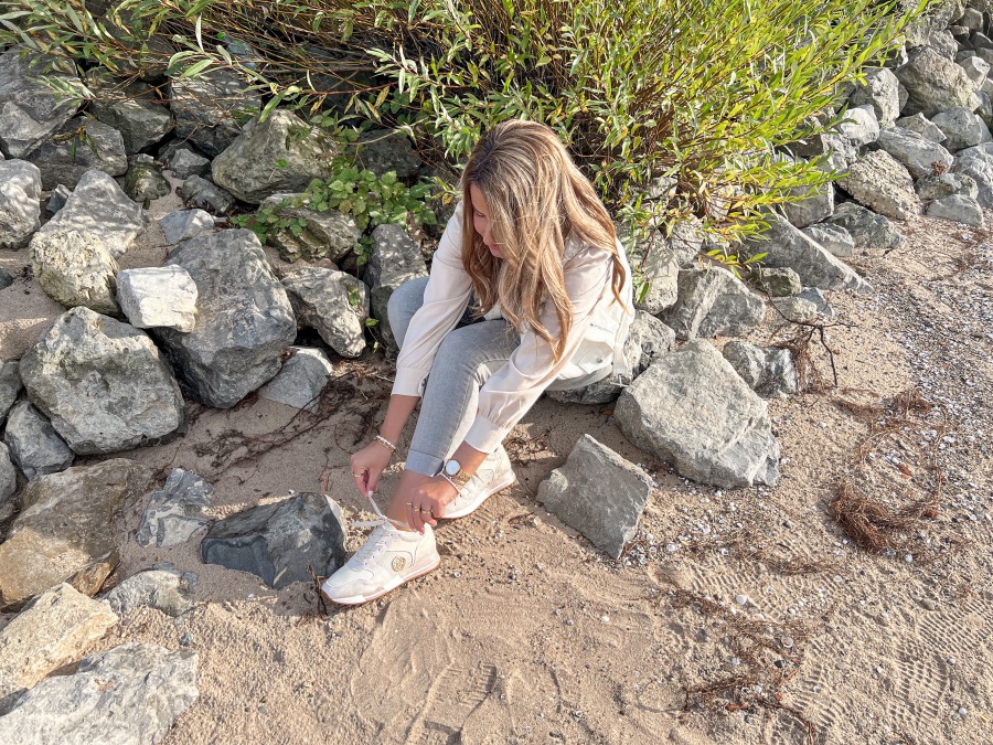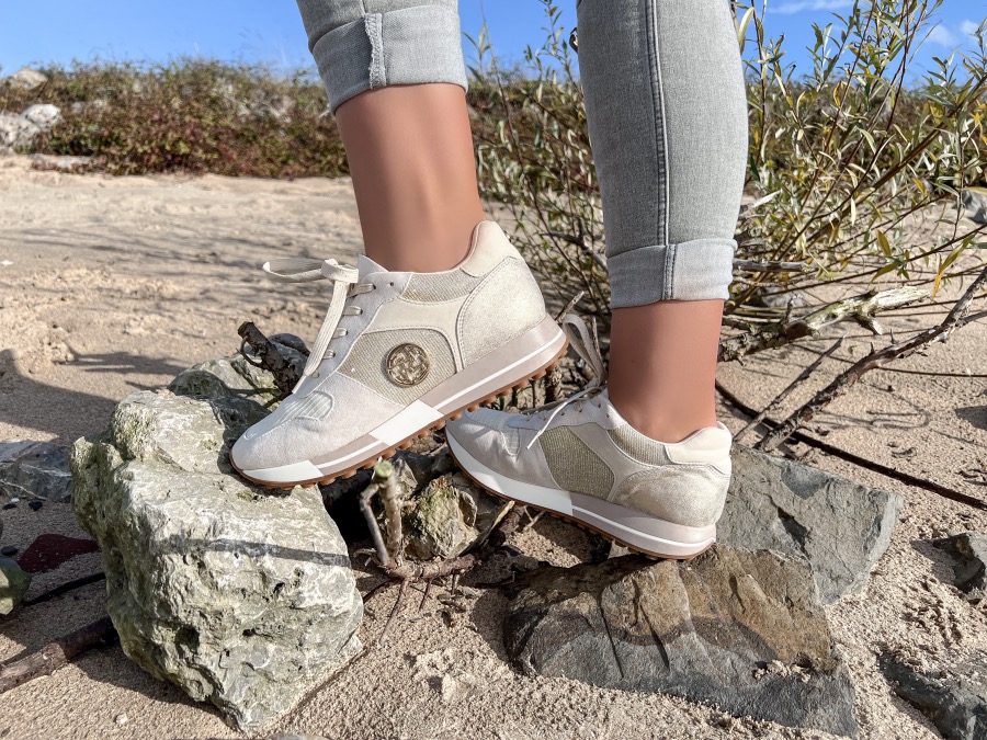LA STRADA SNEAKERS MET UITNEEMBAAR VOETBED | € 39,99 € 69,99Deze La Strada sneakers in een beige kleur zijn voorzien van goudkleurige details en dat is precies wat ik leuk vind. De sneakers hebben een goud logo aan de zijkanten en zijn voorzien van gouden glitters. Ik vind het zo mooi staan in combinatie met de beige kleur. Normaal gesproken ben ik echt van de witte sneakers maar een keer een ander kleurtje vind ik ook wel leuk. Daarnaast is beige net als wit een neutrale kleur die je met veel outfits kunt combineren. De sneakers zitten ontzettend comfortabel en hebben een uitneembaar voetbed wat ook wel goed is om te weten. Als je twijfelt tussen twee maten is het verstandig om een maat groter te bestellen.