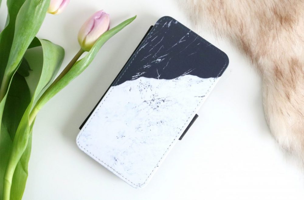 Dit hoesje is totaal anders dan de vorige maar wederom voorzien van een marmeren print. Ik ben dol op marmer dus de keuze was snel gemaakt. Dit hoesje is een flipcase met aan de binnenkant een hard case. Zelf ben ik meer fan van een siliconen case maar doordat deze hard case verwerkt zit in een flipcase vind ik het geen probleem. De flipcase sluit door middel van een magnetische sluiting en beschikt over een knik aan de achterzijde waardoor je je telefoon ook horizontaal neer kunt zetten. Ook dit hoesje vind ik erg mooi.