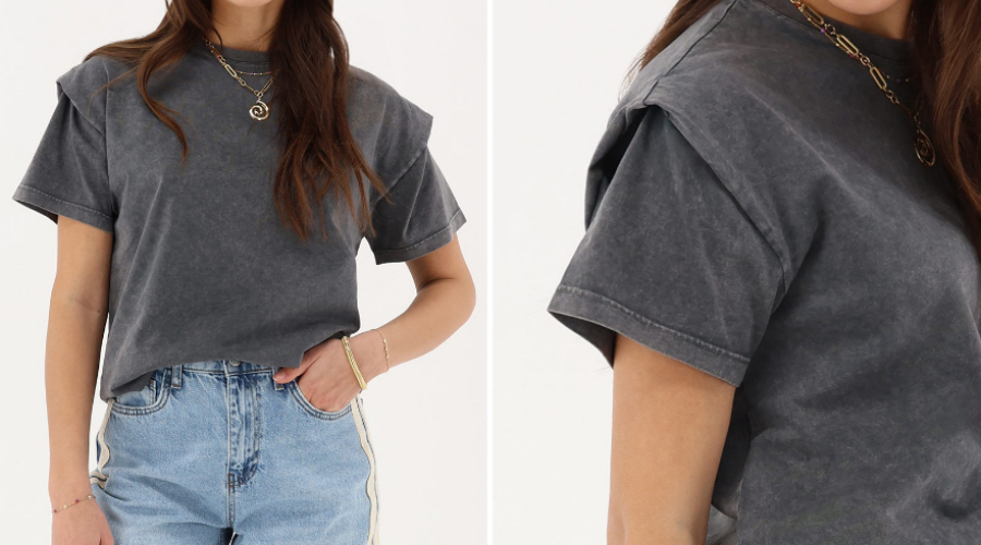 GRIJS T-SHIRT MET MOUW DETAIL | € 29,99
