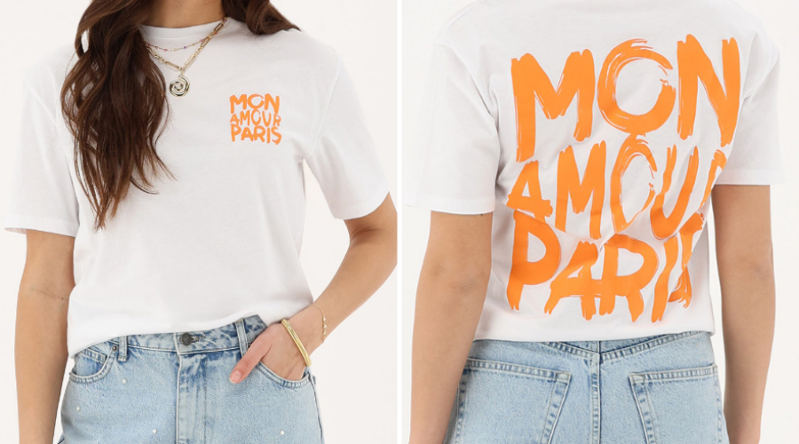 WIT T-SHIRT MET ORANJE “MON AMOUR PARIS” | € 27,99