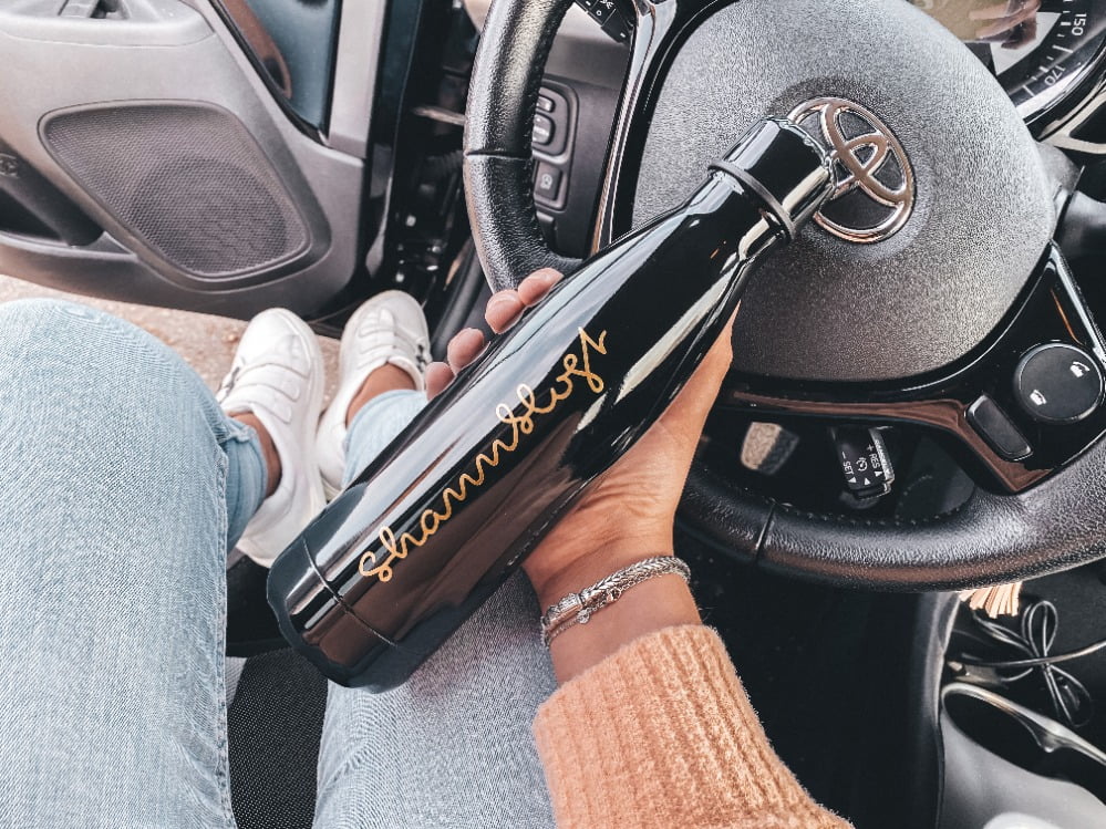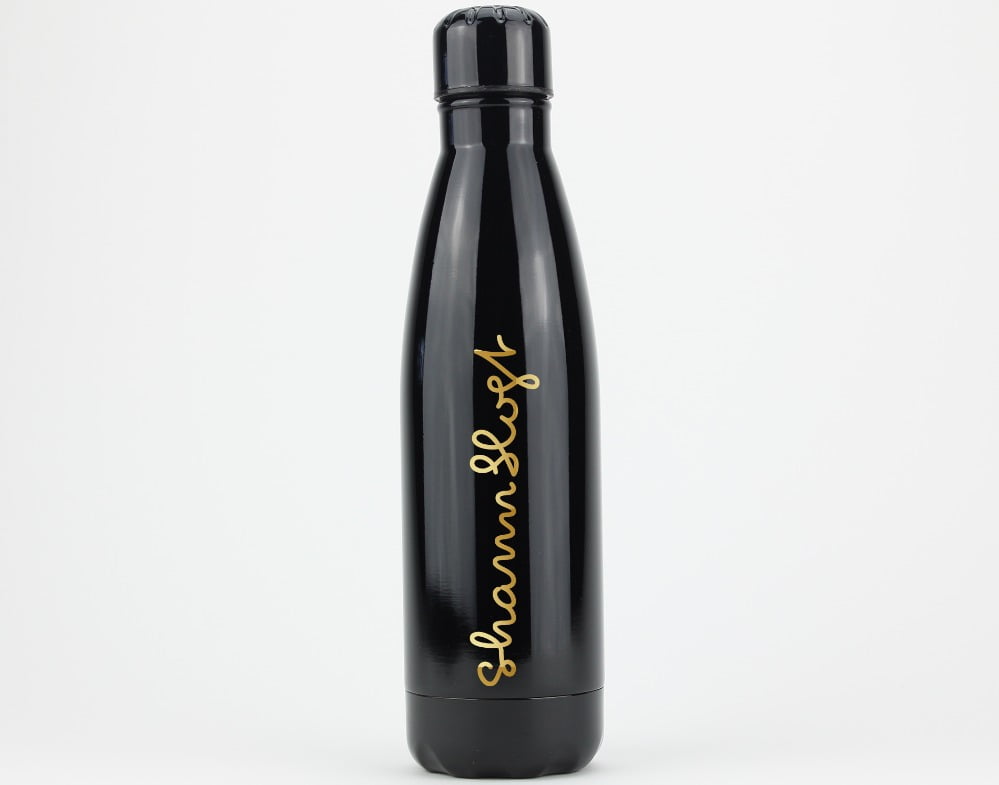 Ik heb zelf gekozen voor de zwarte thermosfles met gouden letters. Ik vind deze kleurencombinatie altijd erg chique en stijlvol. Als tekst heb ik gekozen voor mijn bedrijfsnaam Shannblogt. Ik ben helemaal verliefd op het resultaat. De tekst staat er ontzettend mooi op en de kwaliteit van de thermosfles is ook uitstekend. Ik vind het bijna zonde om uit deze fles te gaan drinken. Ik vind het eerlijk gezegd ook wel een leuk decoratief item voor op mijn bureau bijvoorbeeld. Of ergens in mijn kamer. Misschien dat ik hem zelfs wel als vaasje kan gebruiken voor wat droombloemetjes. Of loop ik nu te hard van stapel? Het is wel duidelijk dat ik razend enthousiast ben en ik raad het dan ook zeker aan om eens een kijkje te nemen bij My Customized.