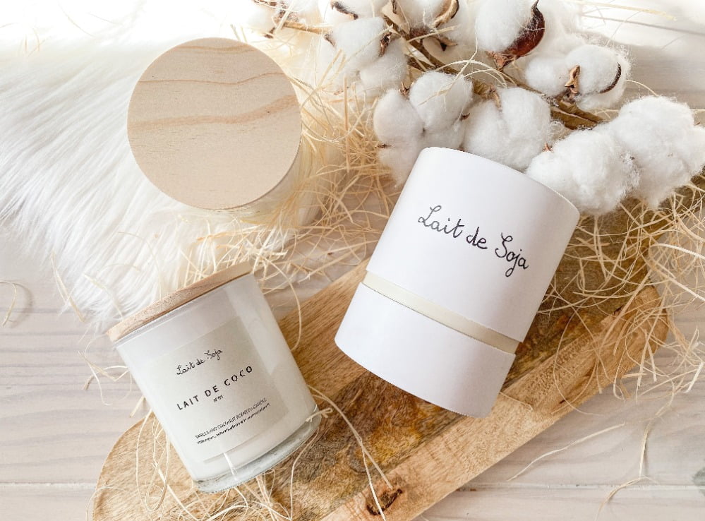 ‘Lait de Soja staat voor de productie van duurzame geurende sojawas kaarsen. Ze gebruiken 100% biologische sojawas, houten lonten en onverdunde en etherische oliën voor de geur. Aangezien conventionele kaarsen paraffinewas bevatten, wat gevaarlijk kan zijn voor de gezondheid, wilt Lait de Soja ons kennis laten maken met onze volledig natuurlijke geurkaarsen.’