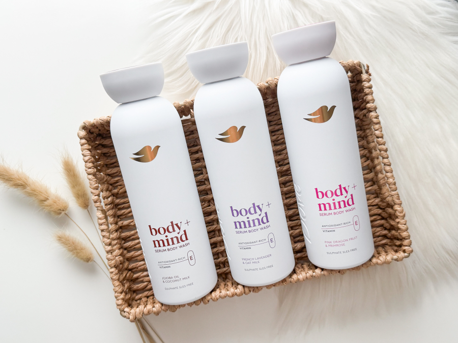 ‘Met de nieuwe Dove Body+Mind serum douchegels til je jouw dagelijkse douchemoment naar een hoger niveau. Deze innovatieve formule combineert hydratatie met een luxueuze beleving, en brengt daarmee skincare en selfcare samen. Verrijkt met antioxidant vitamine E ondersteunt het de huidbarrière, voor een zachte, gevoede en zichtbaar stralende huid.’