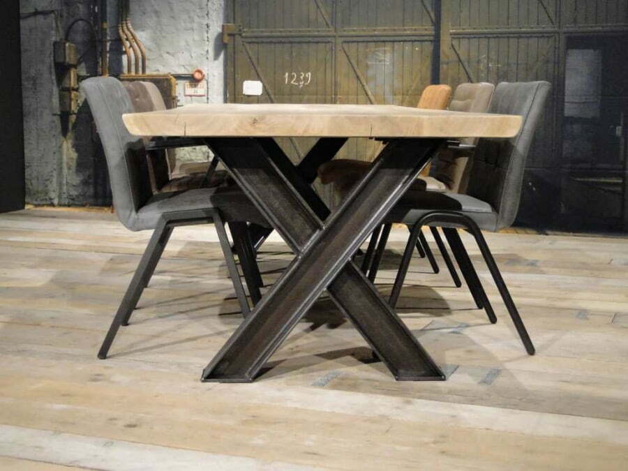 Eettafels die ik persoonlijk het allermooist vind zijn robuuste eettafels. Van die mooie, massieve tafels voorzien van een grof, houten blad en zwarte X poten. Door deze combinatie heeft een tafel een landelijke, industriële uitstraling en dat vind ik zelf echt prachtig. Het warme, knusse van het houten tafelblad en het strakke, industriële van de poten. Ik vind het zó mooi!