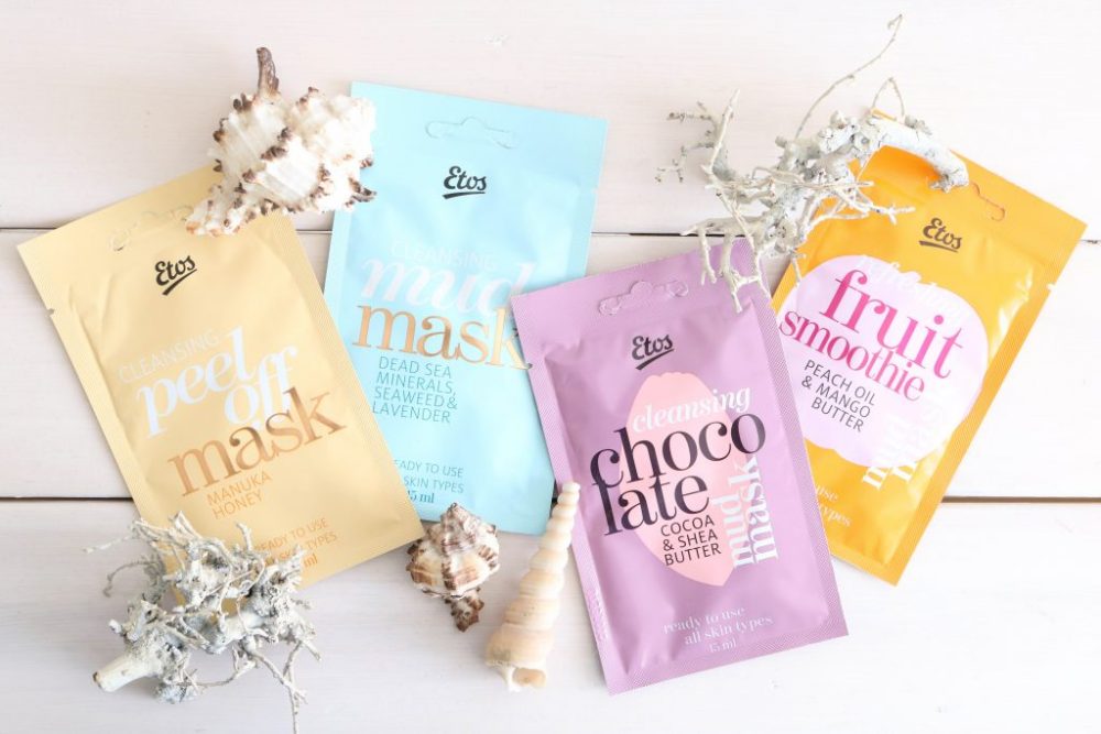 ‘Het Etos Fruit smoothie mud mask bevat een combinatie van perzikolie en mangoboter die de huid haar zachte en frisse teint terug geeft.’