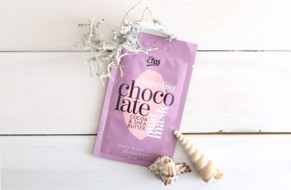 ‘Het Etos Cleansing Chocolate mud mask is de chocolade pakking voor je gezicht. Cacaoboter en hydraterend sheaboter zorgen voor een diep gereinigde en zijdezachte huid. Perfect voor chocoholics!’