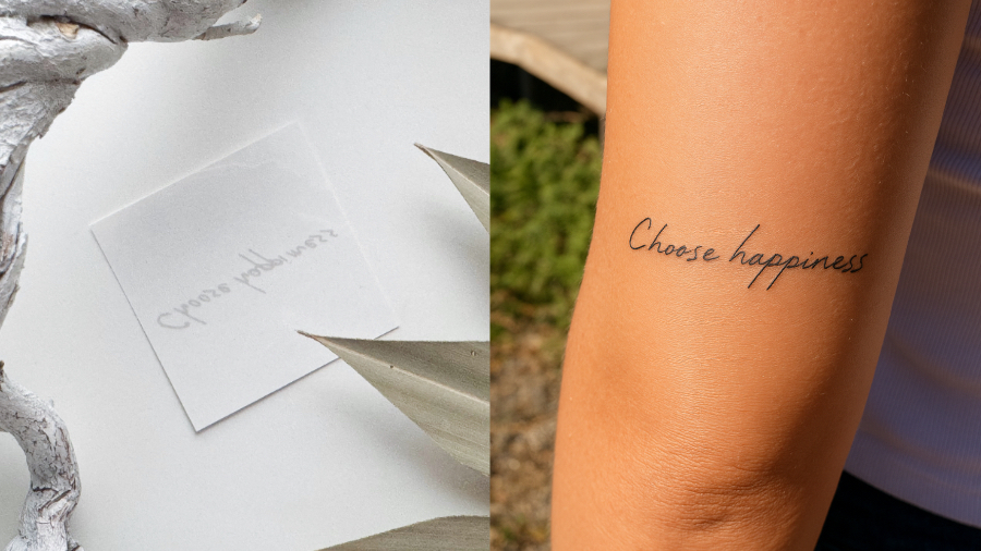 STAP 3: Haal het papier los en laat de huid aan de lucht drogen zonder te wrijven. De tattoo is nu nog licht, binnen 24-48 uur wordt hij donkerder en krijgt hij zijn definitieve kleur. Goed om te weten!