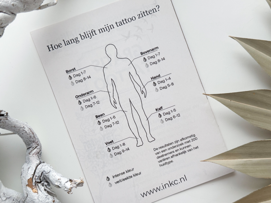 ‘Met de nieuwste techniek van Inkc.nl ziet jouw tijdelijke tattoo er levensecht uit: geen glans, geen stickergevoel, maar de look en feel van een echte tattoo die natuurlijk vervaagt en tot 2 weken blijft. Direct na het zetten is hij onzichtbaar, maar dankzij onze natuurlijke inkt verschijnt het ontwerp binnen 24 uur prachtig. Perfect om een idee uit te proberen of je stijl tijdelijk te upgraden. Bestel nu en draag morgen jouw nieuwe look!’