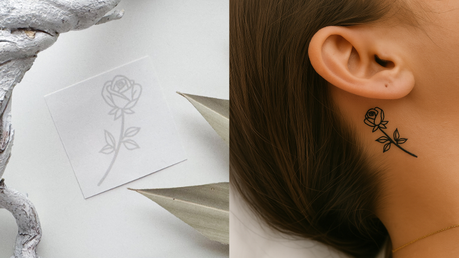 Dit schattige kleine roosje staat op de website afgebeeld als tattoo achter het oor. Dat is ook de rede dat ik voor deze tattoo heb gekozen. Ik vind dat zelf ook één van de leukste plekken voor een tattoo. Het formaat van deze tattoo is daar ook ideaal voor. Heel blij met deze.
