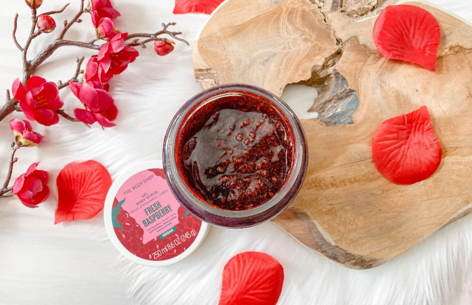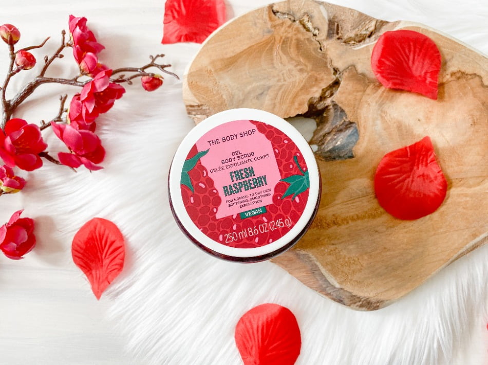 ‘Laat je huid weer stralen met de nieuwe special edition Fresh Raspberry Gel Body Scrub. Na het gebruik van deze milde scrub vol frambozenpitjes en vruchtvlees voelt je huid heerlijk schoon en fris aan.’