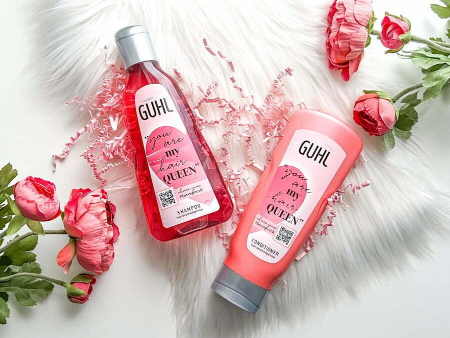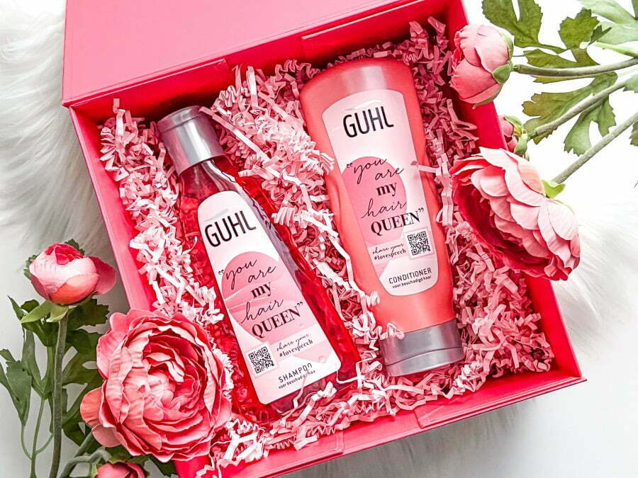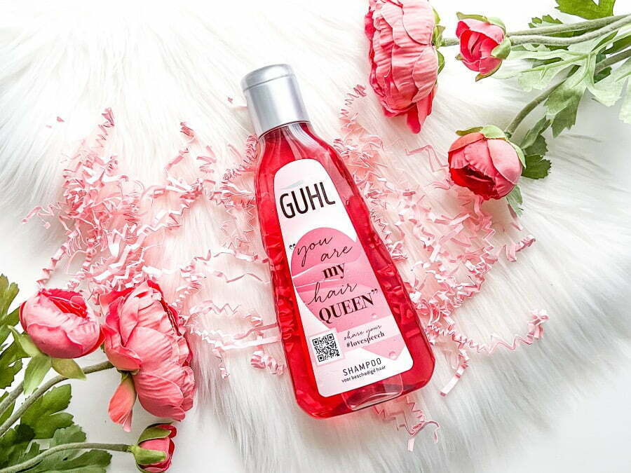 ‘De Guhl Lovespeech Editie verzorgt beschadigd, dof haar en geeft het een gezonde glans. De unieke formule versterkt het haar langdurig en geeft het energie met een activerende, sensuele geur.’