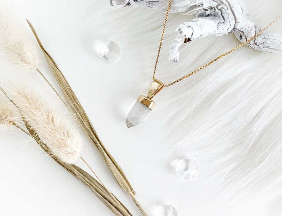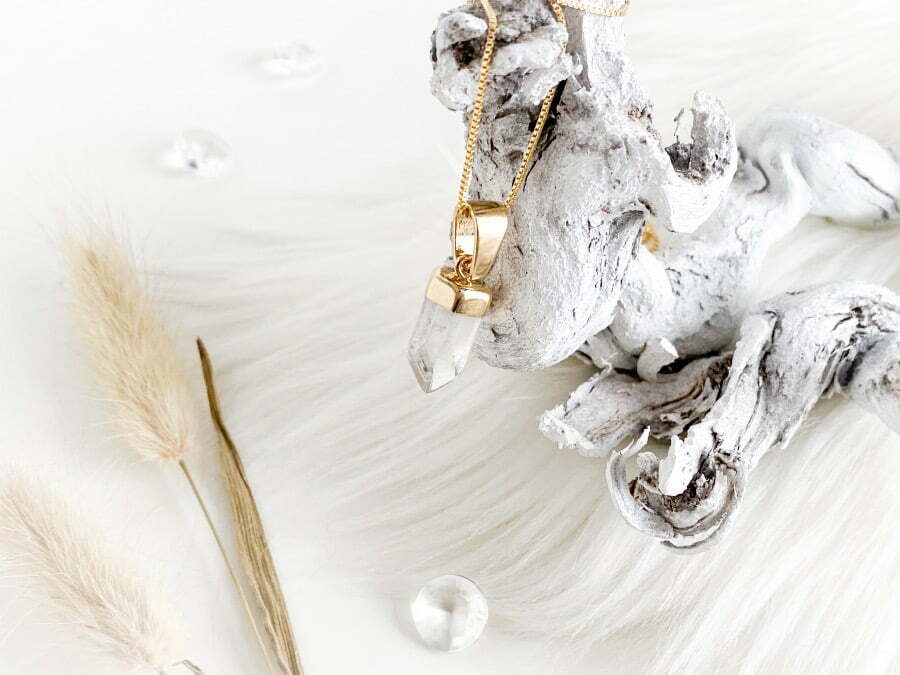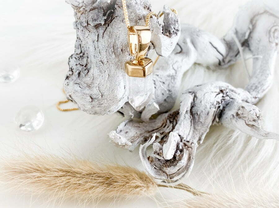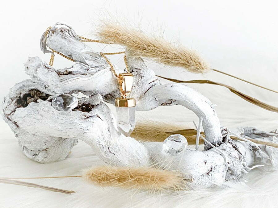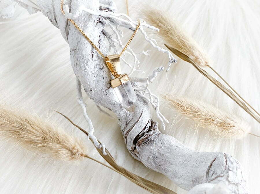 Uiteraard wil ik ook heel graag het sieraad met jullie delen en er wat meer over vertellen want het is zo’n prachtig juweel! Het sieraad dat ik heb mogen ontvangen is de Clear Quartz Hanger + Ketting.