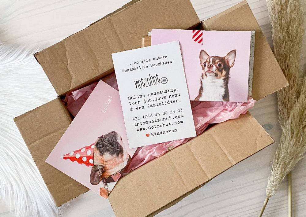 ‘Notzohot is een webshop voor jou en je hond. Vooral je hond als we heel eerlijk zijn. Is Notzohot een dierenwinkel in Eindhoven? Nee. Notzohot is een online cadeaushop voor mens en hond. We verzenden jouw pakketje wèl vanuit Eindhoven want dat is waar we zijn gevestigd, wonen, leven en onze hond uitlaten. Omdat wij als webshop graag iets voor dieren met minder geluk willen betekenen, gaat 10% van de opbrengst van verkochte Notzohot producten naar (asiel)dieren. Wij zijn maar een kleine lokale vis in de wereld van webshops, dus meer dan 10% gaat ons nog niet lukken, maar we ronden het gespaarde bedrag altijd ruim af naar boven. Dat dan weer wel.’