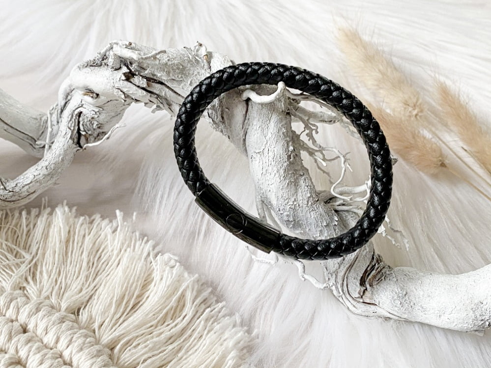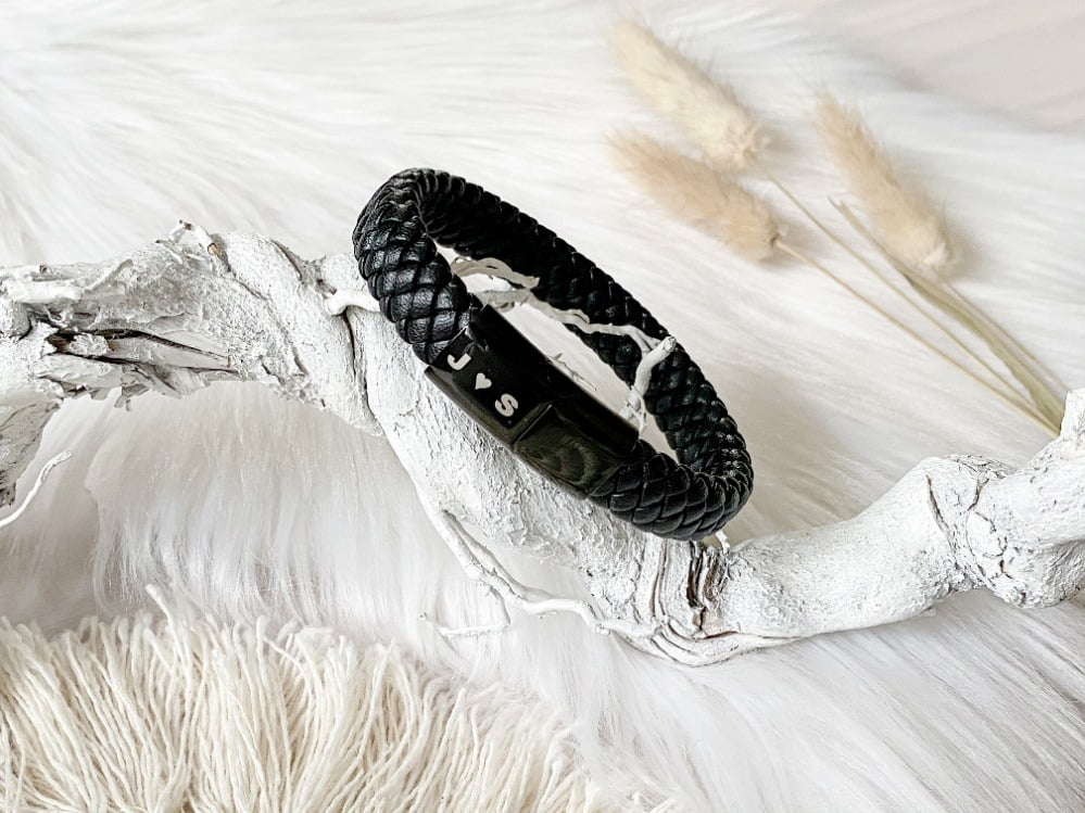 GRAVEERBARE LEREN MANNEN ARMBAND ZWART | € 34,90