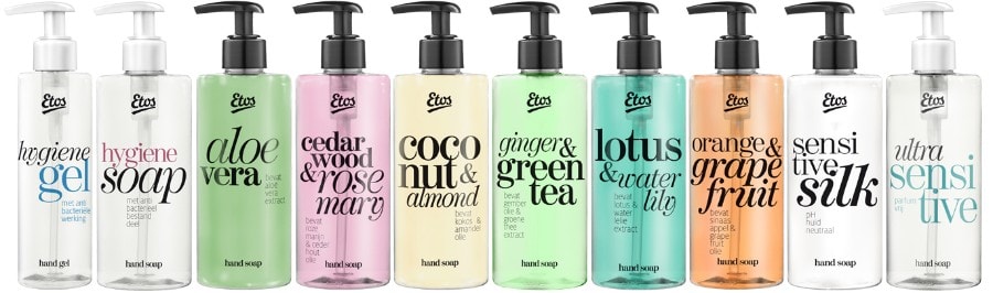 Handen wassen wordt nu nog leuker met het nieuwe zeep-assortiment van Etos. Dit assortiment bestaat uit maar liefst 8 heerlijk geurende hand soaps, 3 verschillende zeepblokken, een desinfecterende hand gel en een desinfecterende hand soap.