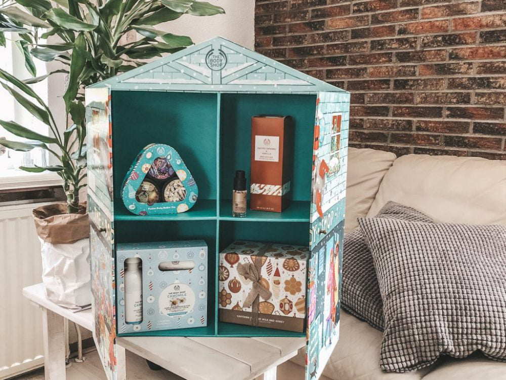 Je kunt je wel voorstellen dat ik mijn ogen niet kon geloven toen de pakketbezorger met dit ENORME pakket voor de deur stond. Ik had geen flauw idee wat het kon zijn. Wat een verrassing en wat ben ik The Body Shop dankbaar. In eerste instantie dacht ik dat het een adventkalender was. Ik heb deze namelijk al eerder mogen ontvangen en deze had dezelfde vorm. Tot mijn grote verbazing zag ik dat het géén adventkalender was maar een soort kastje, gevuld met de mooiste producten. Wauw! Voordat ik de inhoud echt goed had bekeken begon mijn hart al sneller te kloppen. Wat een ongelofelijk mooi pakket!