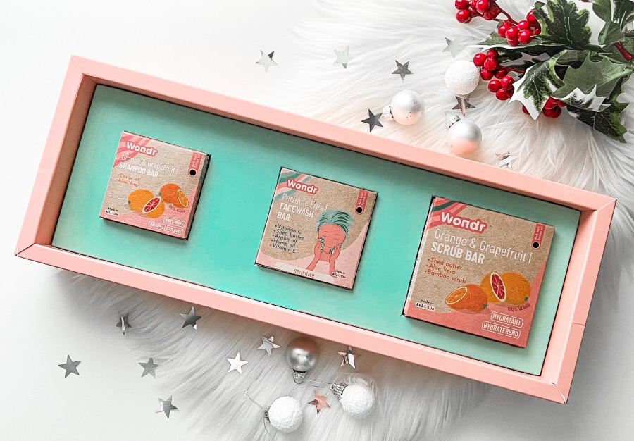 Bij WONDR kun je alle producten los bestellen, kiezen voor een gift box of zelf een eigen box samenstellen. Hoe leuk is dat? Ik vind het zelf samenstellen van een box ook een hele leuke cadeautip. Mocht je het lastig vinden om zo’n box zelf samen te stellen dan kun je uiteraard ook gaan voor de ‘kant-en-klare’ gift box. De It’s The C-son Festive Gift Box bijvoorbeeld. Deze box ziet er niet alleen leuk uit maar bestaat ook uit 3 heerlijke bars waarmee je zowel je huid als je haar flink in de watten kunt leggen.