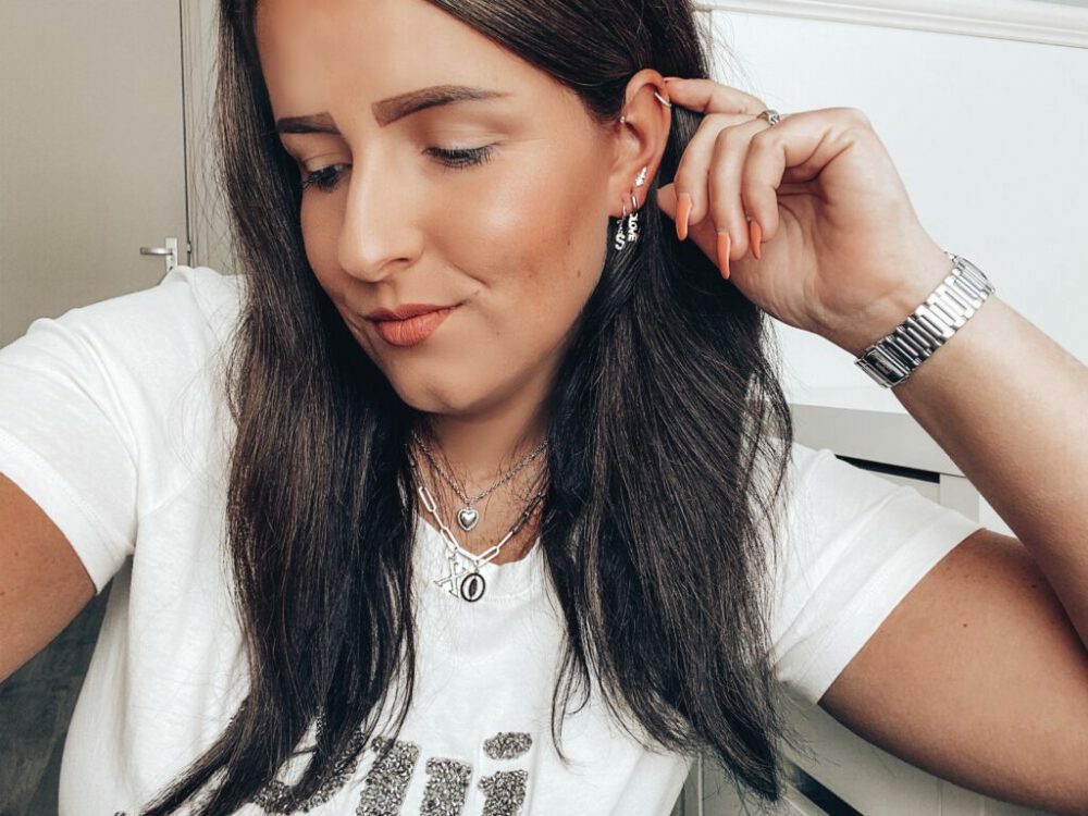 Hoe lief zijn deze oorringetjes? Ik vind de tekst oorbelletjes erg leuk de laatste tijd. Deze oorbellen zijn perfect te combineren met de andere oorbelletjes die ik op dit moment draag. What do you think? De oorbellen zijn gemaakt van stainless steel wat betekent dat ik ze gewoon in kan houden tijdens het douchen. Het wordt niet geadviseerd maar ik weet uit ervaring dat het kan! Héél fijn want dat is typisch iets wat ik altijd vergeet. Ik ben heel blij met deze cuties!