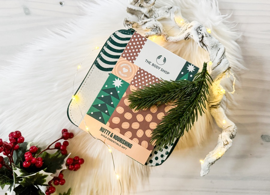 ‘Geef droge huid voor Sint of Kerst wat extra vertroeteling met onze Nutty & Nourishing Shea Essentials Gift Set, verrijkt met met de hand bereide Community Fair Trade-sheaboter uit Ghana.’