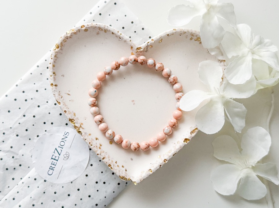 Zoals jullie wel weten inmiddels ben ik helemaal weg van edelstenen en mineralen. Mijn liefde wordt ook als maar groter. Dit prachtige armbandje met roze calciet kralen past perfect in mijn collectie. Ik ben namelijk dol op dit soort zachte kleuren.