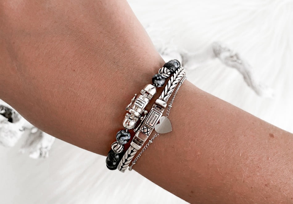 De sluiting en bedels zijn gemaakt van het fijnste 925 zilver welke wordt vervaardigd door ambachtelijke Balinese handwerkers en zijn ontworpen in Amsterdam. De sluiting is magnetisch en is overigens ook nog voorzien van een veiligheidsslot waardoor je hem niet kun verliezen. De armband is verkrijgbaar in heel veel verschillende lengtematen: 16 cm, 17 cm, 18 cm, 19 cm, 20 cm, 21, cm en 23 cm. Zo’n ruim aanbod in maten vind ik echt een heel goed pluspunt. Vooral omdat ik zelf vrij dunne polsen heb en een armband al snel te groot is.
