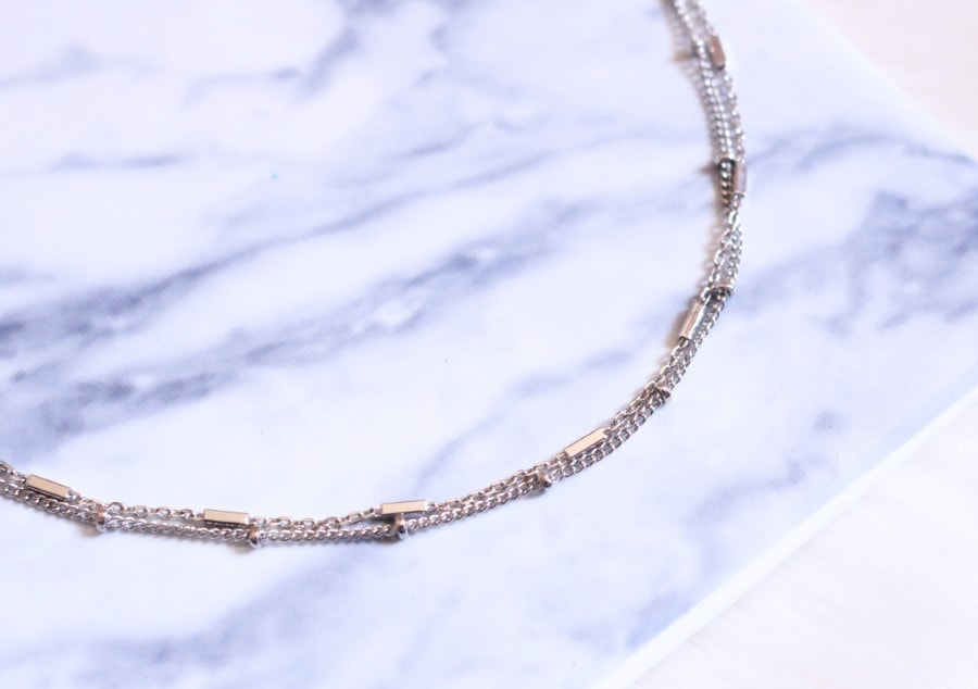 Nu we mijn favoriete horloge, armband, oorbellen en ring hebben gehad is het tijd om mijn favoriete zilveren kettingen met jullie te delen. Dit zijn er maar liefst 4. Laat ik beginnen met de kettingen die op dit moment erg populair zijn. Chokers. Ik heb twee favoriete zilverkleurige chokers. Ik begin met een choker die in veel webshops verkrijgbaar is.