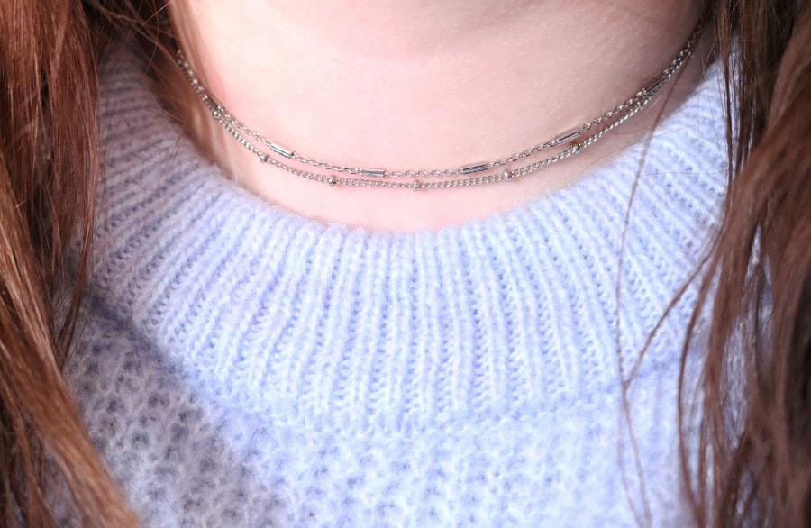 Deze choker is wederom vrij simpel en heeft twee lagen. Beide lagen hebben een andere schakel. Dit maakt de choker vrij uniek. Ik heb deze choker ook nooit ergens anders gespot. Omdat deze choker twee lagen heeft zou ik hem zelf niet snel combineren met een andere ketting.