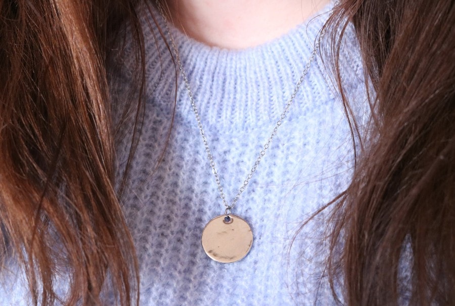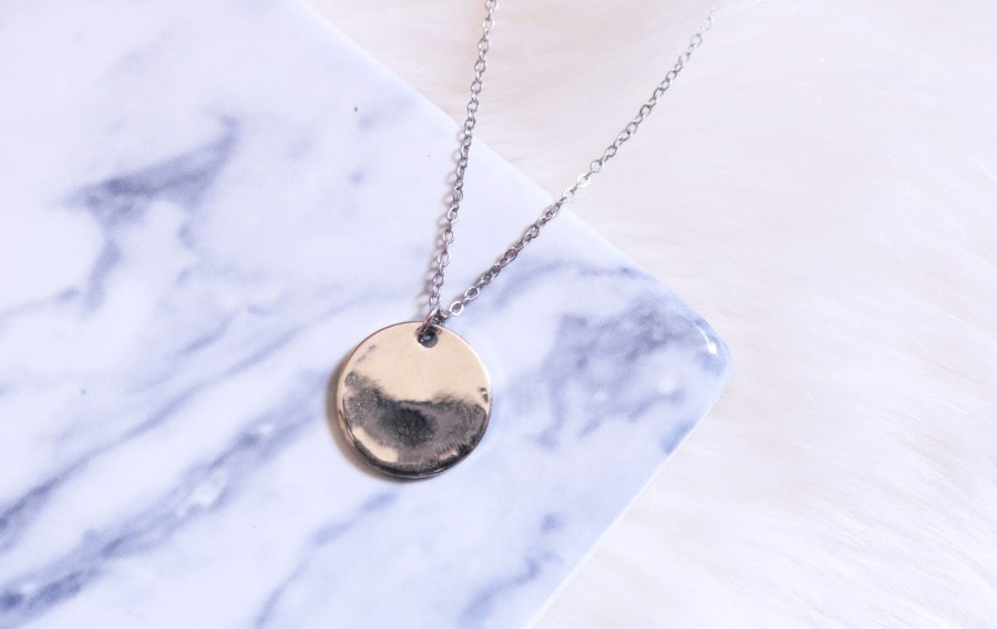 Een ketting die ook favoriet is en ik al vaak heb gedragen is een zilverkleurige ketting met daaraan een simpel muntje.