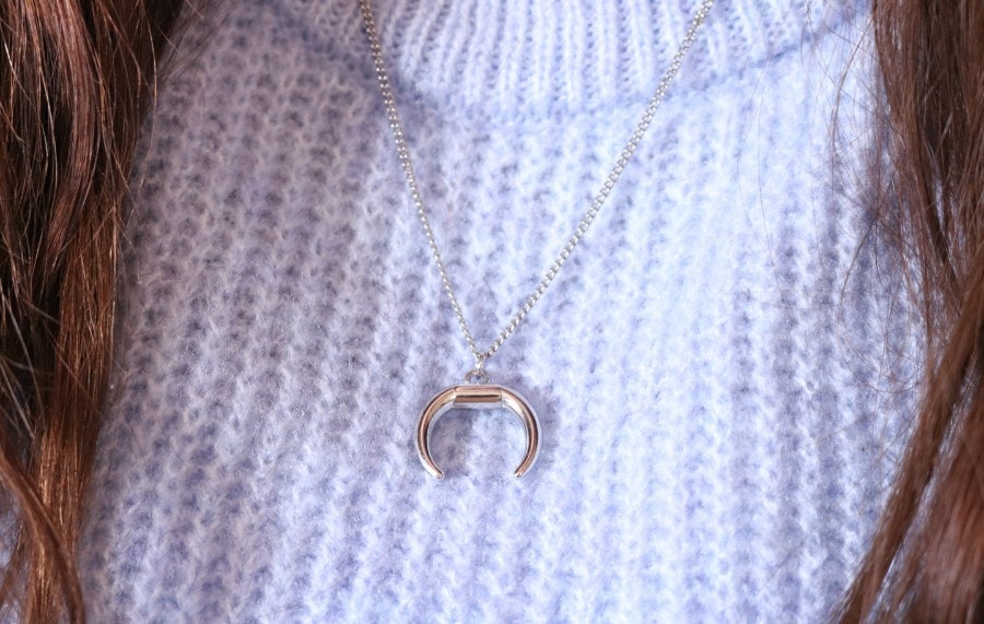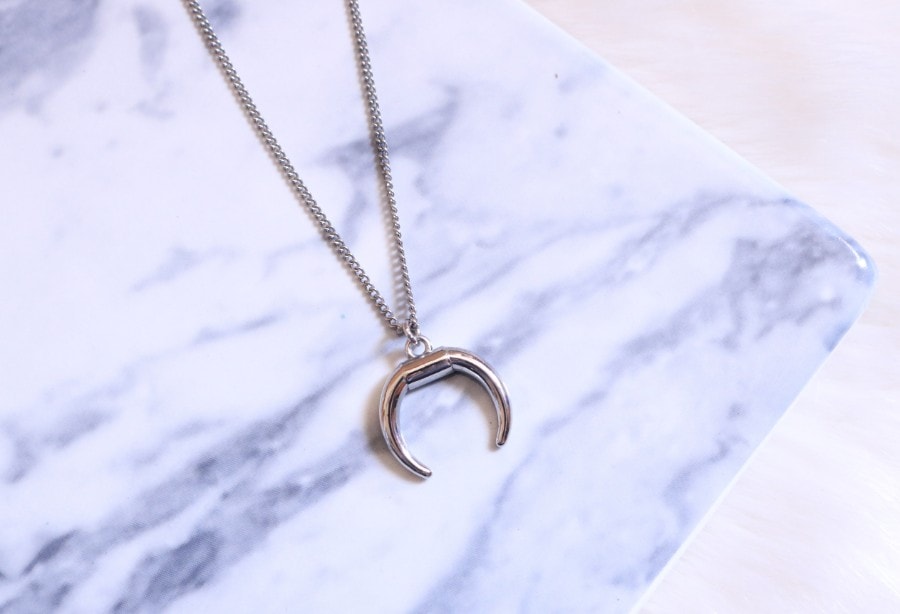 En dan nu mijn laatste favoriete sieraad. Een zilverkleurige ketting met hanger in de vorm van een halve maan.