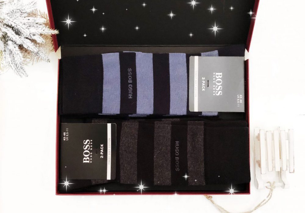 De Hugo Boss sokken zijn verpakt in een prachtige geschenkdoos. Hierdoor is het cadeau meteen klaar om onder de boom gezet te worden. Het ziet er echt heel erg feestelijk uit. Super mooi! Evenals de kleuren. De sokken zijn zwart/grijs en blauw. Dat zijn ook nog eens zijn lievelingskleuren. Hoe leuk is dat? De sokken zijn verkrijgbaar in verschillende maten.