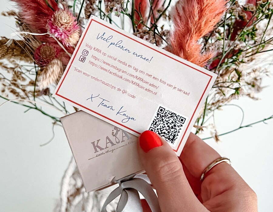 ‘Dankzij deze uitspraak van mijn 5-jarige dochter Kaya werd ik op het idee gebracht om een eigen sieraden webshop te starten. Kaya wilde namelijk graag samen met mama een matching sieraden setje dragen. Nergens te vinden… dus zelf maar ontwerpen! De webshop, gespecialiseerd in sieraden voor mama & haar mini-me, ging snel daarna live. Inmiddels vind je bij KAYA Sieraden meer dan alleen mama-dochter sieraden. Samen met een team creëer ik unieke & persoonlijke sieraden met ieder een eigen verhaal. Zo kun jij betekenisvolle momenten altijd met je meedragen.’