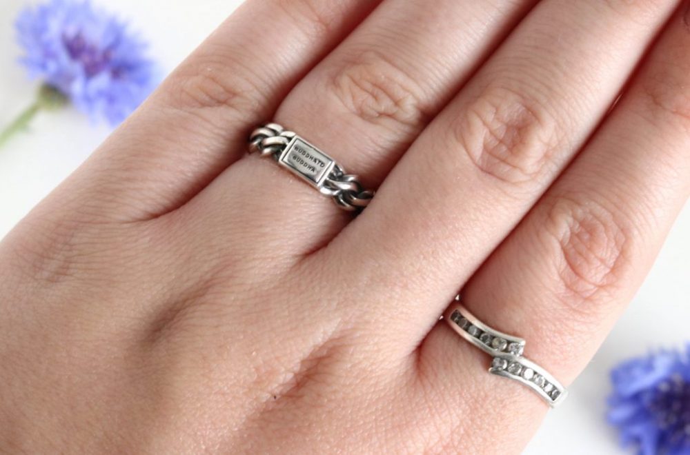 De Francis XS ring is vrij subtiel en daarom voor mij dé perfecte keus. Ik heb al een andere Buddha to Buddha ring en dat is de George small ring. Ook die is vrij subtiel. I love them! Ik moet wel toegeven dat ik het soms wat lastig vind met het kiezen van de juiste maat. Ik heb volgens mij ringmaat 17,5 voor mijn ringvingers. Maar Buddha to Buddha heeft geen halve ringmaten helaas. Maat 18 vind ik nét te groot en maat 17 past wel maar zit vrij krap wanneer ik warme handen heb. Toch heb ik er voor gekozen om maat 17 te houden en ik ben blij met deze keuze. De Buddha to Buddha Francis XS ring kost € 79.