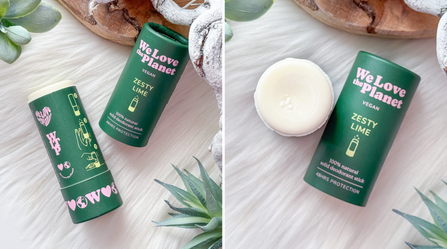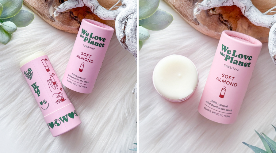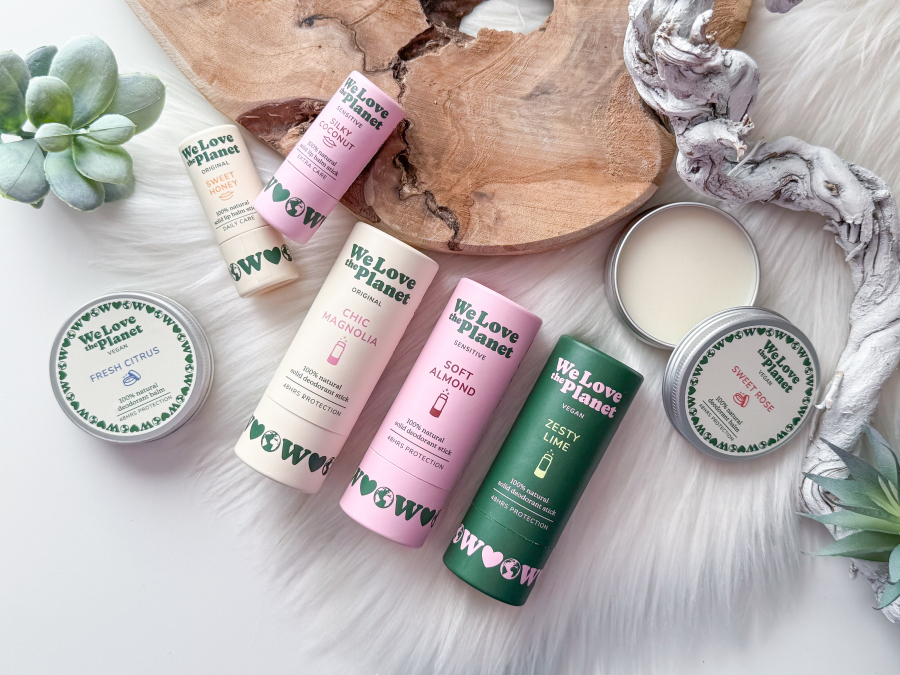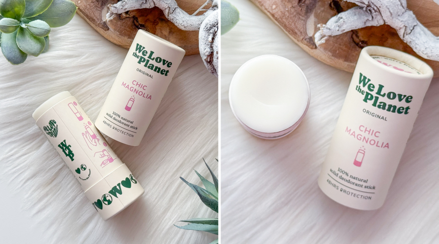 Één van de favorieten van We Love The Planet blijft de deodorant stick. Deze is gemaakt van 100% natuurlijke ingrediënten zonder onnodige toevoegingen. De verpakking is duurzaam van FSC mix papier en volledig recyclebaar. De deodorant bevat bijenwas en kokosolie wat zorgt voor een milde verzorging van de huid. Baking soda is dé werkzame stof die geurtjes neutraliseert op een natuurlijke manier. De deodorant is makkelijk aan te brengen en biedt tot wel 48 uur frisheid. Dat is toch fantastisch? Er zijn ook vegan varianten beschikbaar op basis van zonnebloem wax en shea butter. Voor de gevoelige oksels is een sensitive versie beschikbaar met dezelfde effectieve werking. Super fijn! Mijn huid is sinds een tijdje namelijk erg gevoelig voor niet natuurlijke producten en producten die troep ingrediënten bevatten. Een gewone deodorant verpakt in een spuitbus is geen optie meer voor mij. Ik ben dus heel erg blij dat ik dit merk ontdekt heb. Op dit moment kun je kiezen uit zes heerlijke geuren. Ik heb de geuren Chic Magnolia, Soft Almond en Zesty Lime ontvangen en vind ze stuk voor stuk heerlijk!