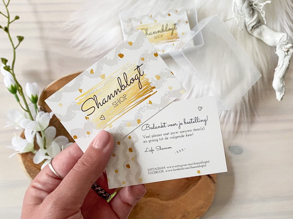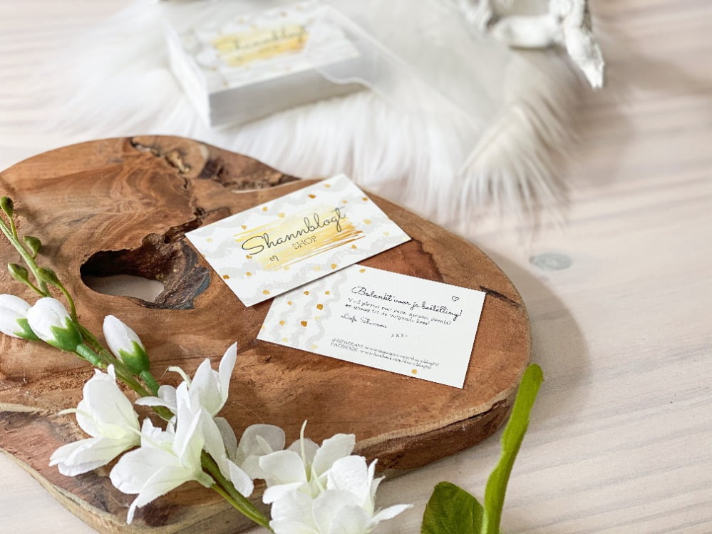 Zoals jullie wellicht weten heb ik sinds oktober vorig jaar een eigen webshop. De Shannblogt Shop. Deze vind je in de menubalk bovenaan de pagina. Ik zorg er altijd voor dat iedere bestelling leuk wordt ingepakt, doe er een klein cadeautje bij en daarnaast gebruik ik ALTIJD leuke stickers en visitekaartjes. Deze laat ik altijd maken bij Studentendrukwerk.nl. Ook dit keer ben ik er weer goed geslaagd. Kijk je mee?