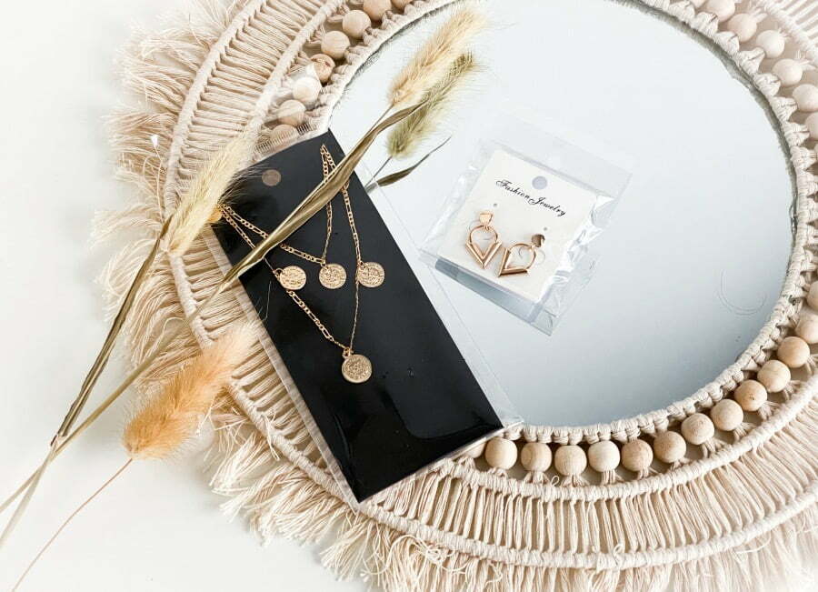 De sieraden die ik heb gescoord zijn leuke, goudkleurige oorbelletjes en een goudkleurige laagjes ketting met muntjes. Ik moet zeggen dat ik nog meer leuke sieraden zag maar ik wilde niet weer meteen te hard van stapel lopen. Als ik eenmaal leuke items zie dan heb ik vaak ook zó mijn winkelwagentje vol zitten. Dit keer heb ik mezelf ingehouden!