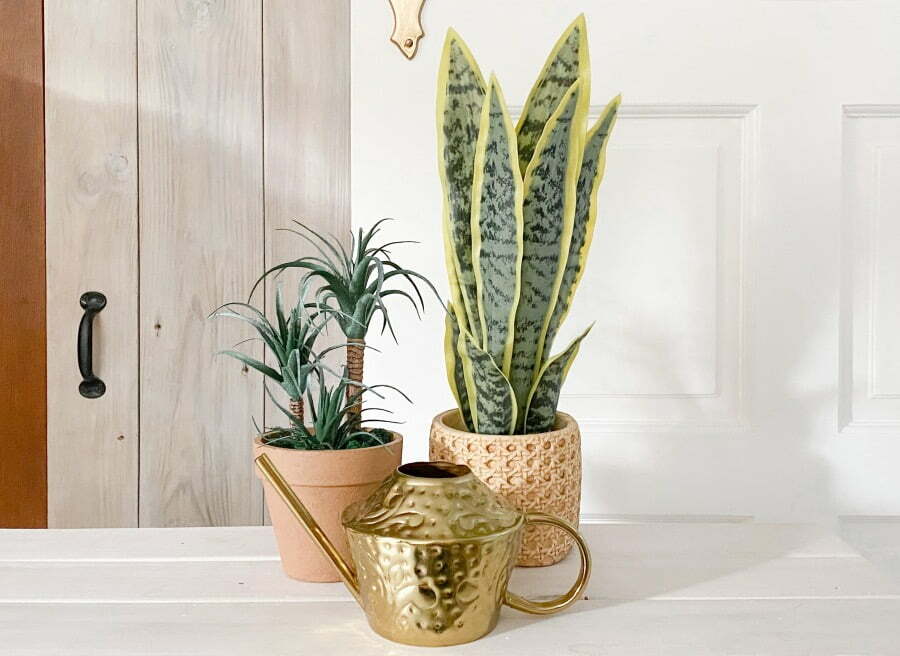 Iets wat ik naast kaarsen ook heel erg gezellig vind in huis zijn mooie (kunst)planten. Tegenwoordig zijn er steeds mooiere kunstplanten verkrijgbaar die bijna niet meer van echte planten te onderscheiden zijn. Ideaal! Ook bij Xenos scoor ik regelmatig leuke kunstplantjes. Ook dit keer vond ik er weer twee hele leuke. Een Sanseveria en een leuk vetplantje. Ik vind ze beide prachtig! Naast de leuke plantjes shopte ik ook een prachtig goudkleurig gietertje bij Xenos. Ondanks dat het kunstplantjes zijn vind ik het wel leuk om er een gietertje bij te decoreren. Hoe mooi is dit gietertje ook? Ik ben er helemaal weg van.