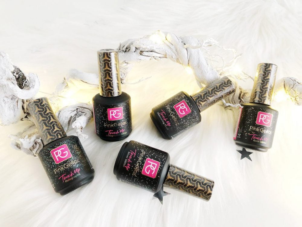 De Touch Up Shine collectie van Pink Gellac bestaat uit 5 prachtige topcoats. Je kunt deze topcoats over elke gewenste kleur aanbrengen. Mis je wat shimmer of glitter in jouw favoriete kleur? Breng er dan een mooie topcoat over aan, laat deze 60 seconden uitharden in de UV of LED lamp en you are ready to sparkle. Super leuk om in huis te hebben. Vooral met de feestdagen in aantocht!