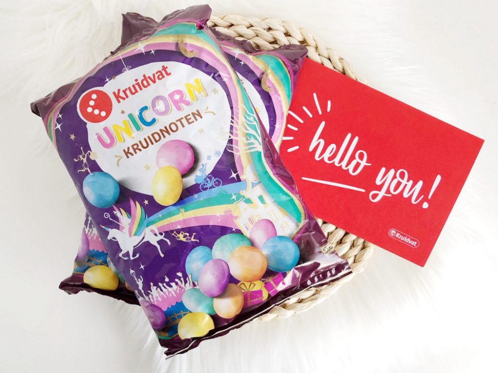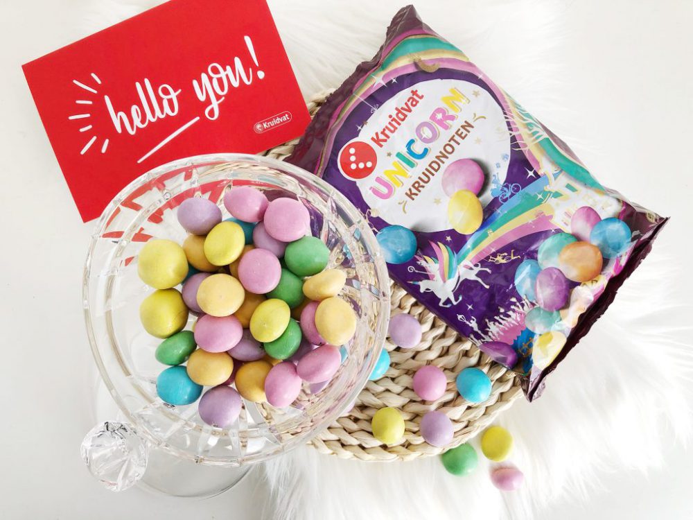 Kruidvat lanceert een bijzondere nieuwe smaak kruidnoten om optimaal van te kunnen genieten de aankomende periode: Kruidvat Unicorn Kruidnoten. De Unicorn Kruidnoten hebben een vrolijk uiterlijk dankzij de regenboogachtige kleuren. Gedoopt in romige melkchocolade en omhuld met een kleurrijk suikerlaagje zorgen de knapperige Unicorn Kruidnoten voor het ultieme geluksmoment bij de koffie of thee.