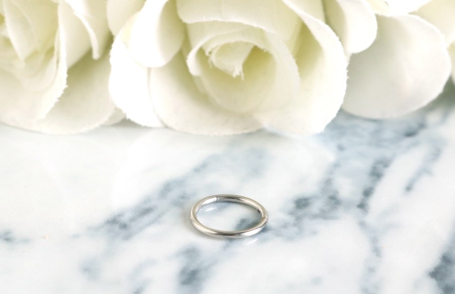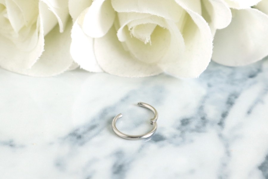 Deze segment ring is vrij simpel en dat is nou net waar ik van hou. Iemand die zelf ook een helix piercing heeft en een simpel segment ringetje draagt weet waarschijnlijk wel dat het niet bepaald makkelijk is om zo’n ringetje in te krijgen. De meeste mensen kiezen er dan ook voor om dit te laten doen door een piercer. Maar deze segment ring is net even anders omdat je deze piercing sluit door middel van een kliksysteem. Hierdoor heb je de piercing er binnen no-time in!