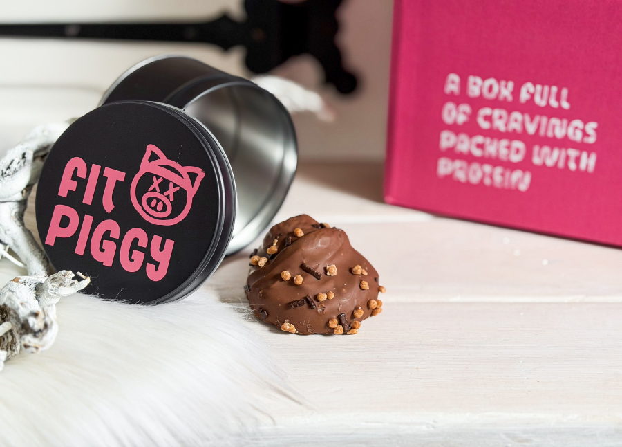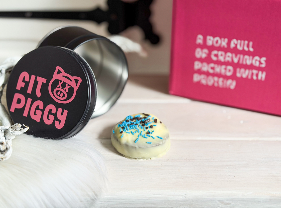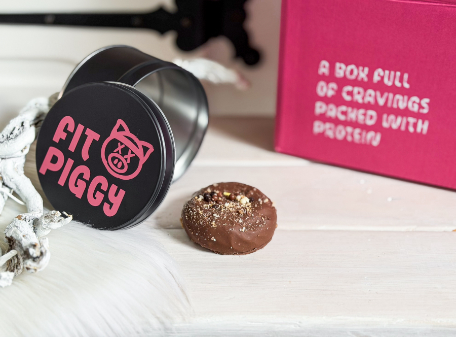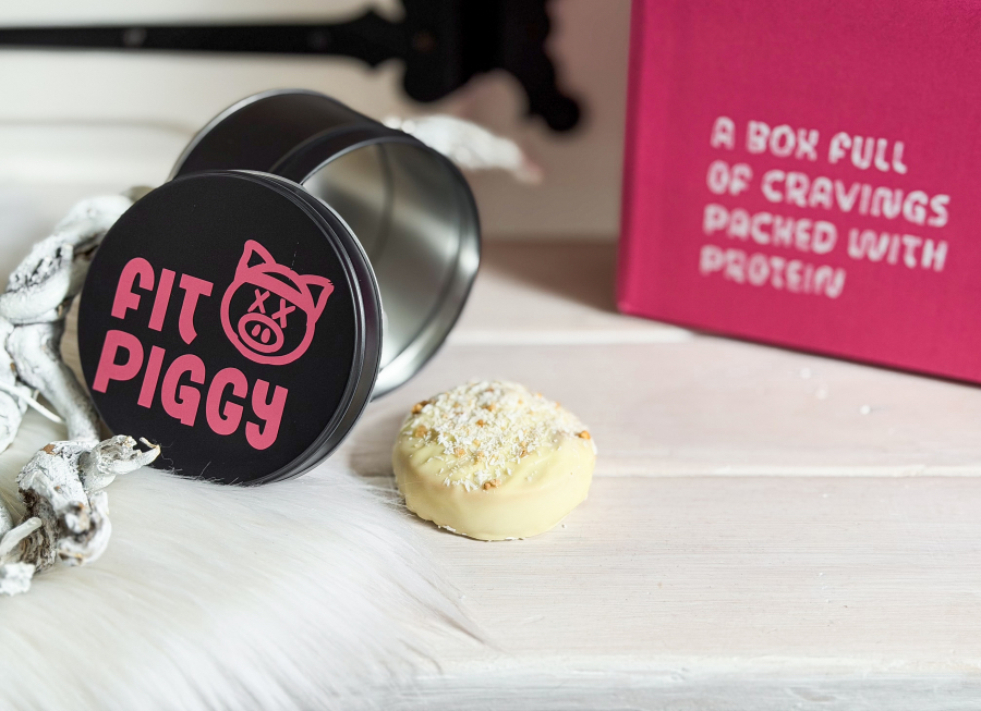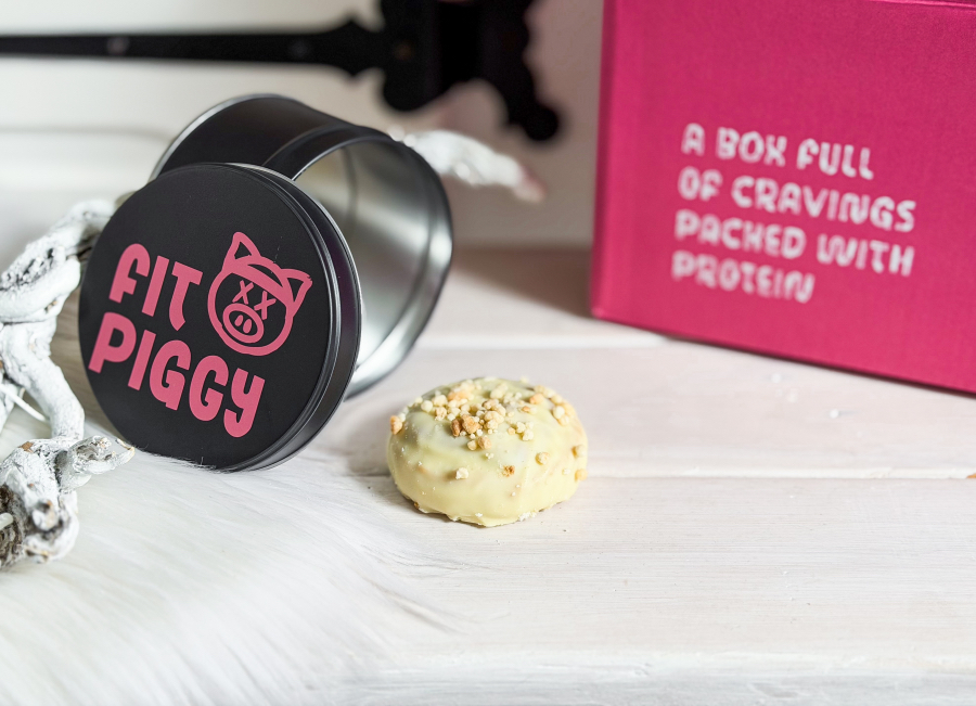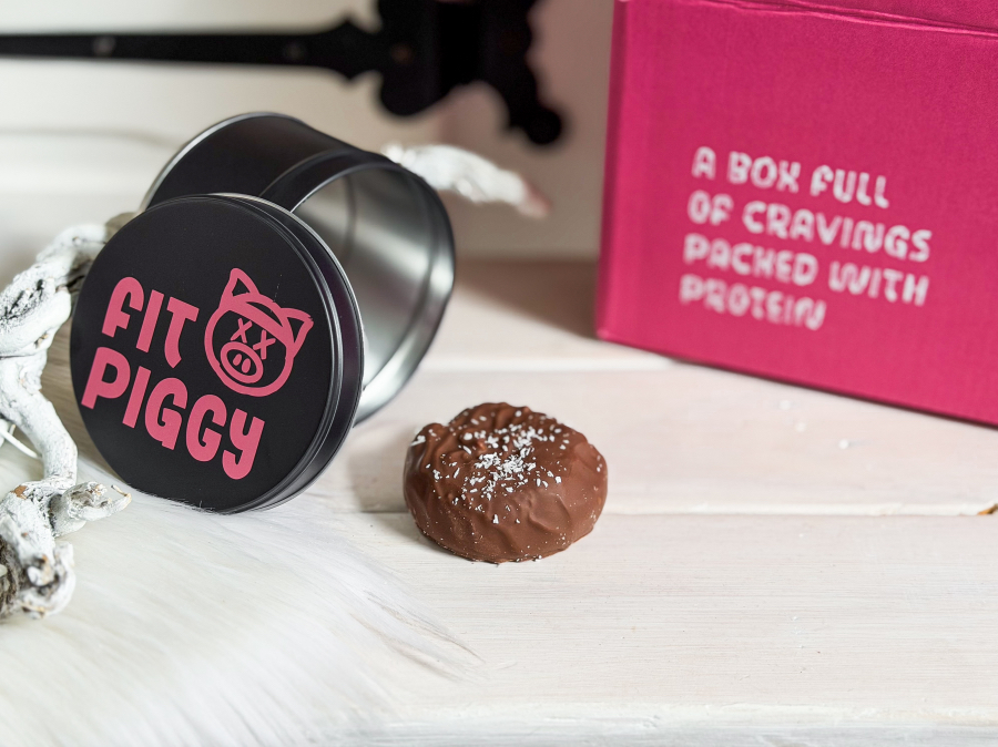 ‘Wie/wat is Fit Piggy? Fit Piggy staat bekend om hun handgemaakte traktaties die eiwitrijk, mega vullend, maar vooral enorm lekker zijn. Krachtpatsers waarmee jij je zoete cravings vervult en een flinke dosis eiwit als bonus binnenkrijgt. Dat kan ik persoonlijk wel gebruiken! De meeste mensen hebben alle mogelijke diëten al geprobeerd en minstens zo vaak gefaald. Het grote probleem is dat die diëten vaak gevuld zijn met restricties, en dat werkt niet. Jezelf ontzeggen waar je stiekem zo naar verlangt, dat hou je vaak maar even vol. De eigenaren van Fit Piggy zijn daarom voor een fijne relatie met voeding gegaan zonder restricties. Deze combinatie maakt een levensstijl waar zij maar ook ik enorm goed op gaan: lekker, voedzaam, stressloos en zonder beperkingen. Eentje waarbij je voornamelijk kiest voor functionele voeding om je lichaam te voeden, aangevuld met soulfoods om de cravings te stillen waar je zo van geniet.’