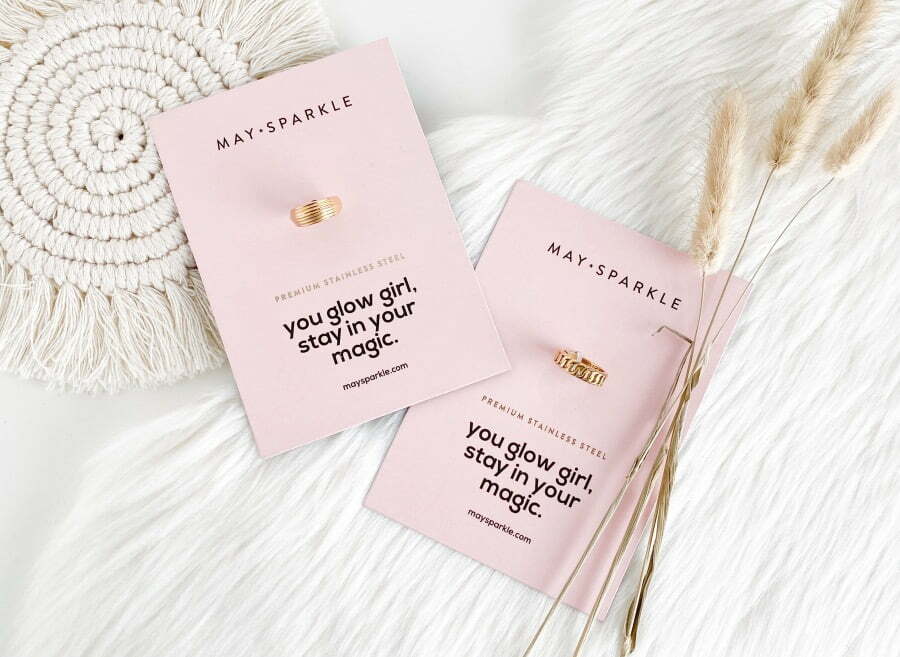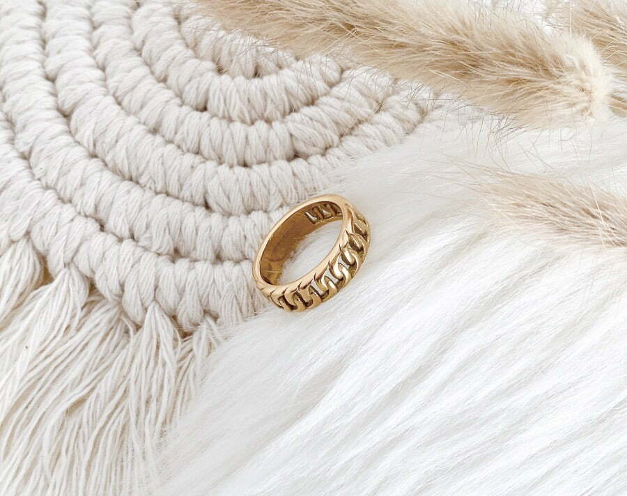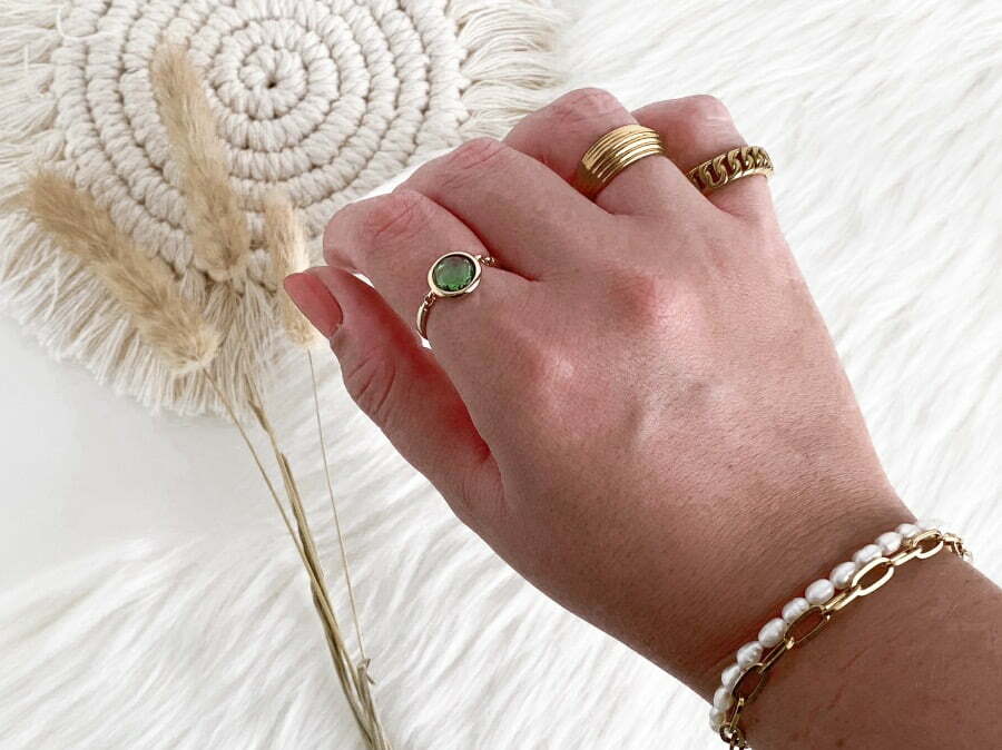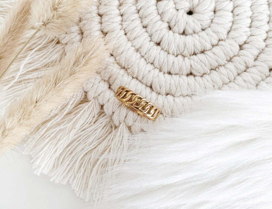 MAY SPARKLE – SUMMER BREEZE SOPHIE | € 31,95 € 39,95Om te beginnen deze prachtige, eye-catcher van May Sparkle. De ring met grove gourmet schakel geeft mij een beetje de stoere vibes van Buddha tot Buddha maar omdat de ring goud is vind ik hem ook wel iets wat chique. De ring is gemaakt van RVS en verkrijgbaar in heel wat maten. Wat heel fijn is voor mensen met dunne of juist wat dikkere vingers. Ik zit er altijd een beetje tussen in. Ik heb volgens mij één van de meest gangbare ringmaten. Ik vind hem erg mooi en het is zeker een aanrader als je van wat opvallendere ringen houdt.